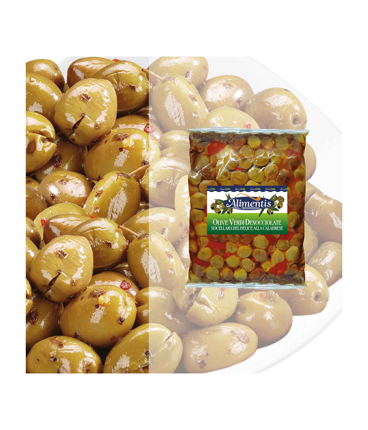ALIMENTIS Calabrian Style Green Pitted Sicilian Olives 1 kg (Bag)